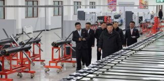 Kim Jong Un inspecciona la producción de armas teledirigidas tácticas en...