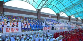 El centro acondicionado de forma peculiar en la zona de Hwasong, Pyongyang, capital de la RPD de Corea está lleno de visitantes diariamente.