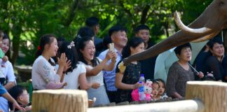 El centro acondicionado de forma peculiar en la zona de Hwasong, Pyongyang, capital de la RPD de Corea está lleno de visitantes diariamente.