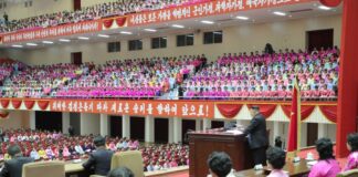 El centro acondicionado de forma peculiar en la zona de Hwasong, Pyongyang, capital de la RPD de Corea está lleno de visitantes diariamente.