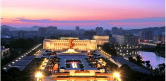 El centro acondicionado de forma peculiar en la zona de Hwasong, Pyongyang, capital de la RPD de Corea está lleno de visitantes diariamente.