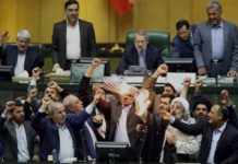 Diputados iraníes queman bandera de EU en repudio a Trump