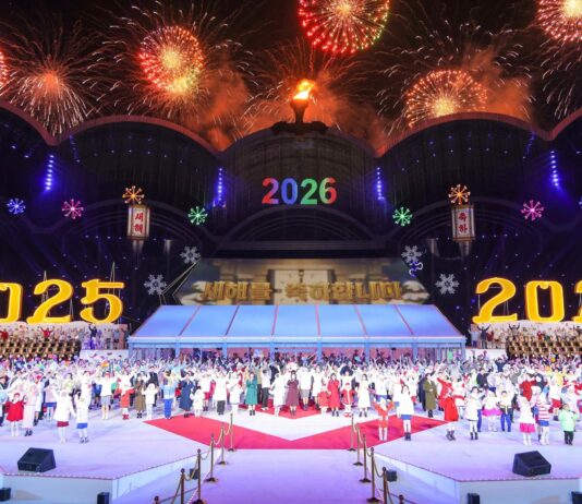 A la hora cero del primero de enero de 2026, en la Plaza Kim Il Sung, Pyongyang, capital de la RPD de Corea, un...