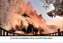 Cascada Rimyongsu en el invierno