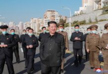 Recorre el camarada líder Kim Jong Un, el reparto residencial con terraza en la...