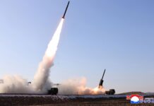 La Dirección General de Misiles de la RPDC prueba el sistema de lanzacohetes reactivos...