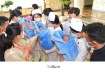 En abril pasado se dieron de alta en la Maternidad de Pyongyang los primeros trillizos del persente año.