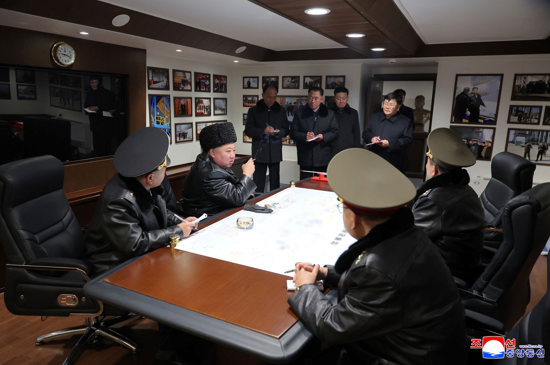 El mismo día, el Secretario General estudió el estado de construcción del destructor No.3 de categoría «Choe Hyon» en pleno progreso en el astillero. Evaluó altamente que los obreros del astillero, que es fidedigna base de construcción de buques de guerra de gran envergadura del país, afamada por la tradición y poderío de autoconfianza.