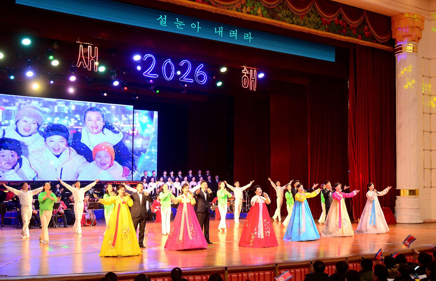 Con motivo del año 2026 tuvieron lugar funciones de artistas, niños y estudiantes en los teatros y avenidas de muchas localidades de la RPD de Corea avivando el júbilo de acoger el año nuevo.