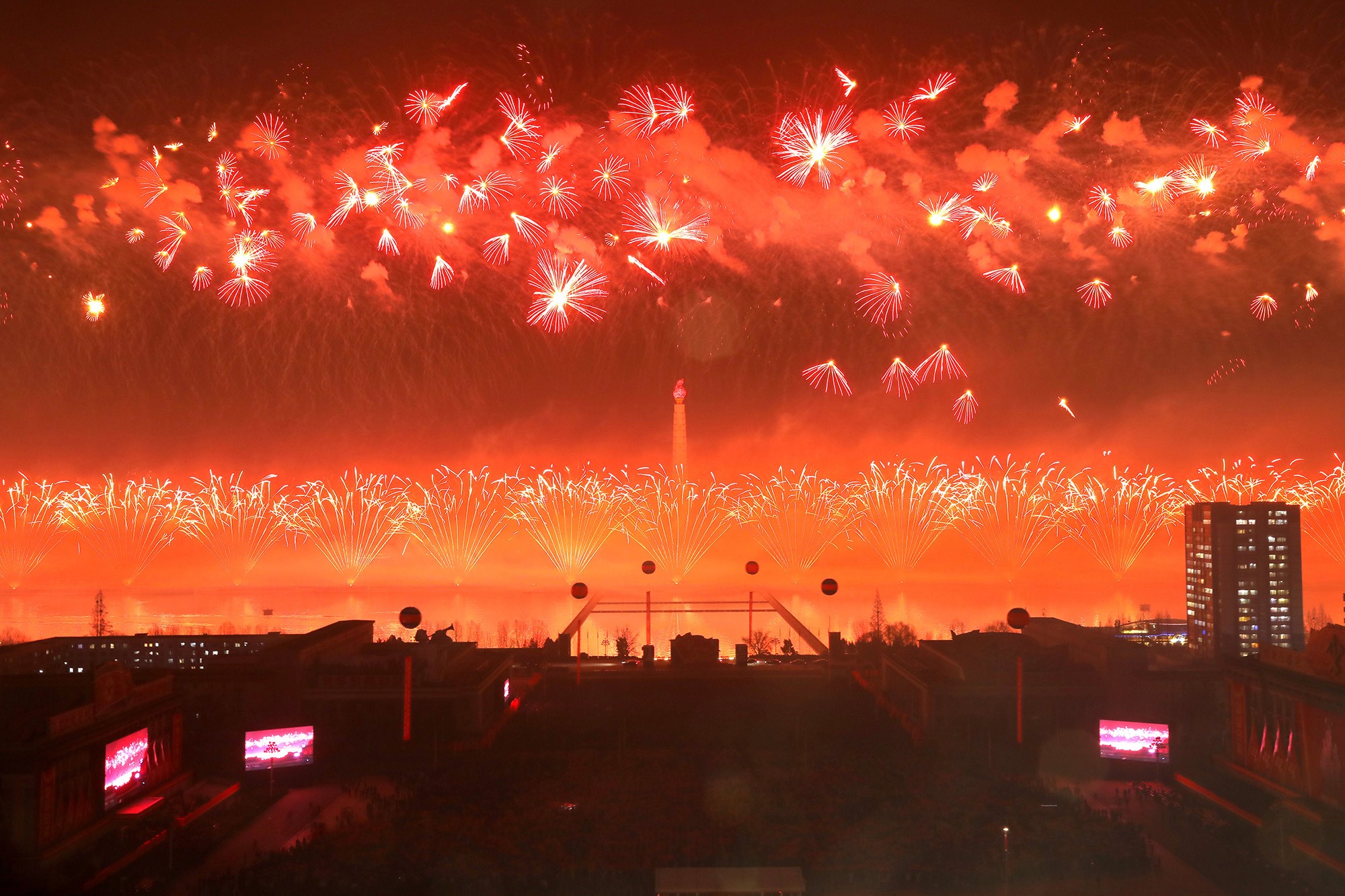Estas son escenas de la velada de salvas artificiales, efectuada el 25 de febrero en la capital Pyongyang de la República Popular Democrática de Corea en homenaje al IX Congreso del Partido del Trabajo de Corea. Los coreanos lo celebraron con gran júbilo como evento de gran trascendencia para el desarrollo estatal.