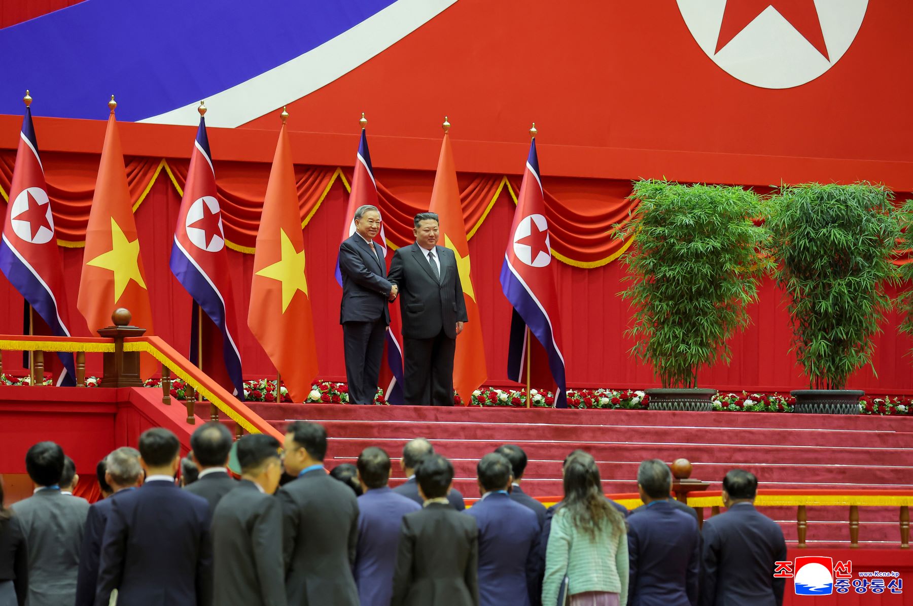 Tuvo lugar el día 9 la ceremonia de bienvenida al Secretario General del Comité Central del Partido Comunista de Vietnam, To Lam, quien realiza una visita estatal a la República Popular Democrática de Corea y participa en las festividades del 80º aniversario de la fundación del Partido del Trabajo de Corea.