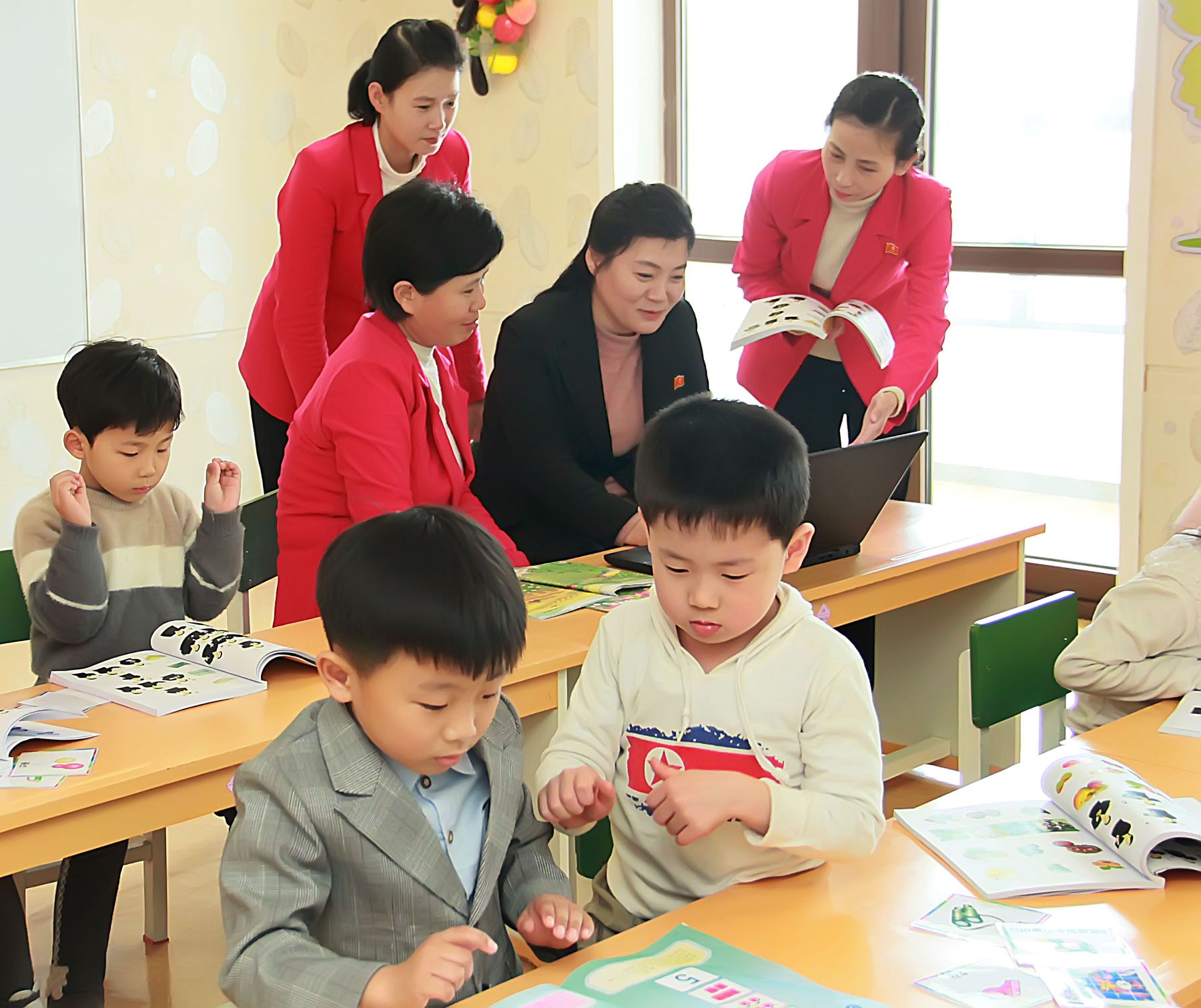 En el Jardín Infantil No. 2 de Hwawon, municipio de Hwasong de Pyongyang, capital de la República Popular Democrática de Corea, se instaló la clase para sordomudos, posibilitándoles recibir la enseñanza, sin ninguna inconveniencia, junto con los niños ordinarios.