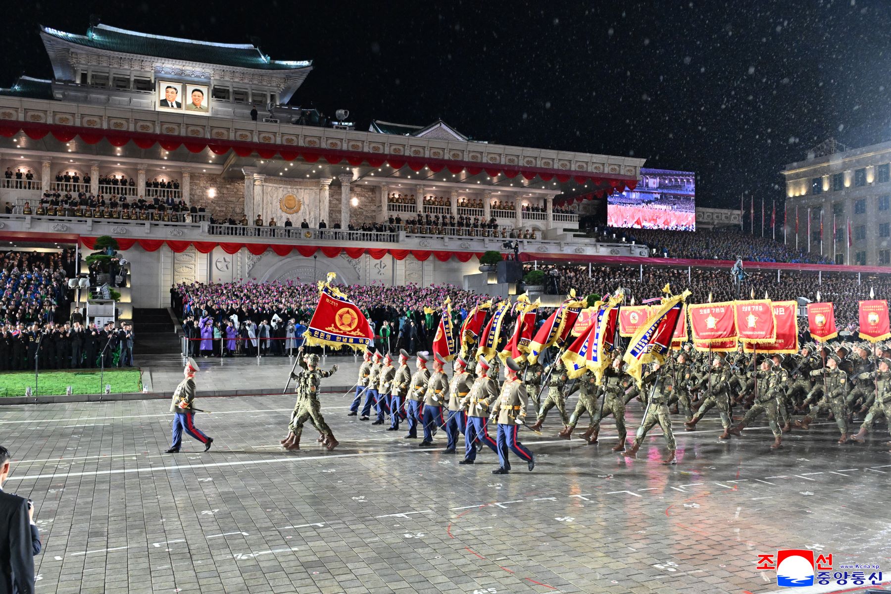 El estimado camarada Kim Jong Un, Secretario General del PTC y Presidente de Asuntos Estatales de la República Popular Democrática de Corea, pasó revista a la guardia de honor del Ejército Popular de Corea y los estandartes de las unidades combinadas de todos los niveles.