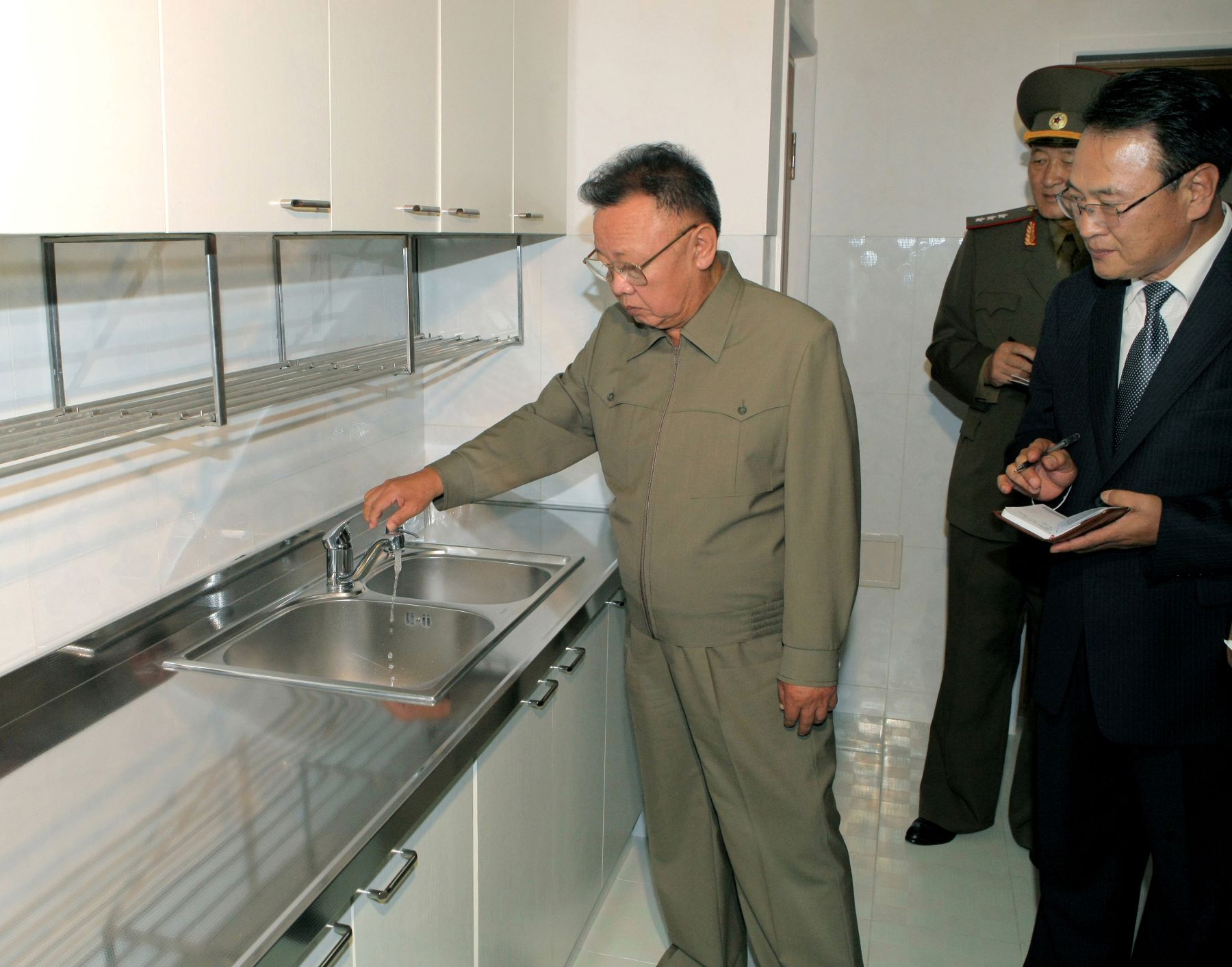 41. El gran Dirigente Kim Jong Il en la cocina del comedor de platos especiales del Restaurante Okryu, octubre de 2010.42. El gran Dirigente Kim Jong Il en una vivienda recién construida, octubre de 2010.43. El gran Dirigente Kim Jong Il en la Empresa de Aguas Medicinales de Kangso, noviembre de 2010.44. El gran Dirigente Kim Jong Il recorre por el Almacén Universal Pothonggang, diciembre de 2010.46. El gran Dirigente Kim Jong Il en la Planta de Agua Manantial Ryongaksan, enero de 2011.47. El gran Dirigente Kim Jong Il en la Fundición de Metales No Ferrosos de Hungnam, marzo de 2011.