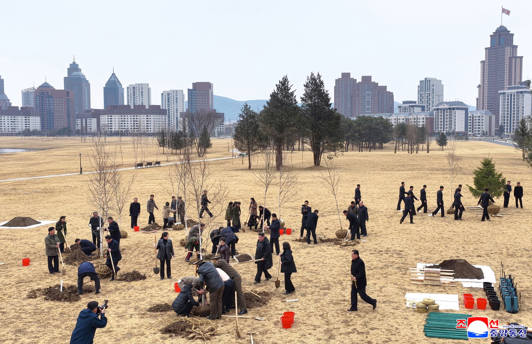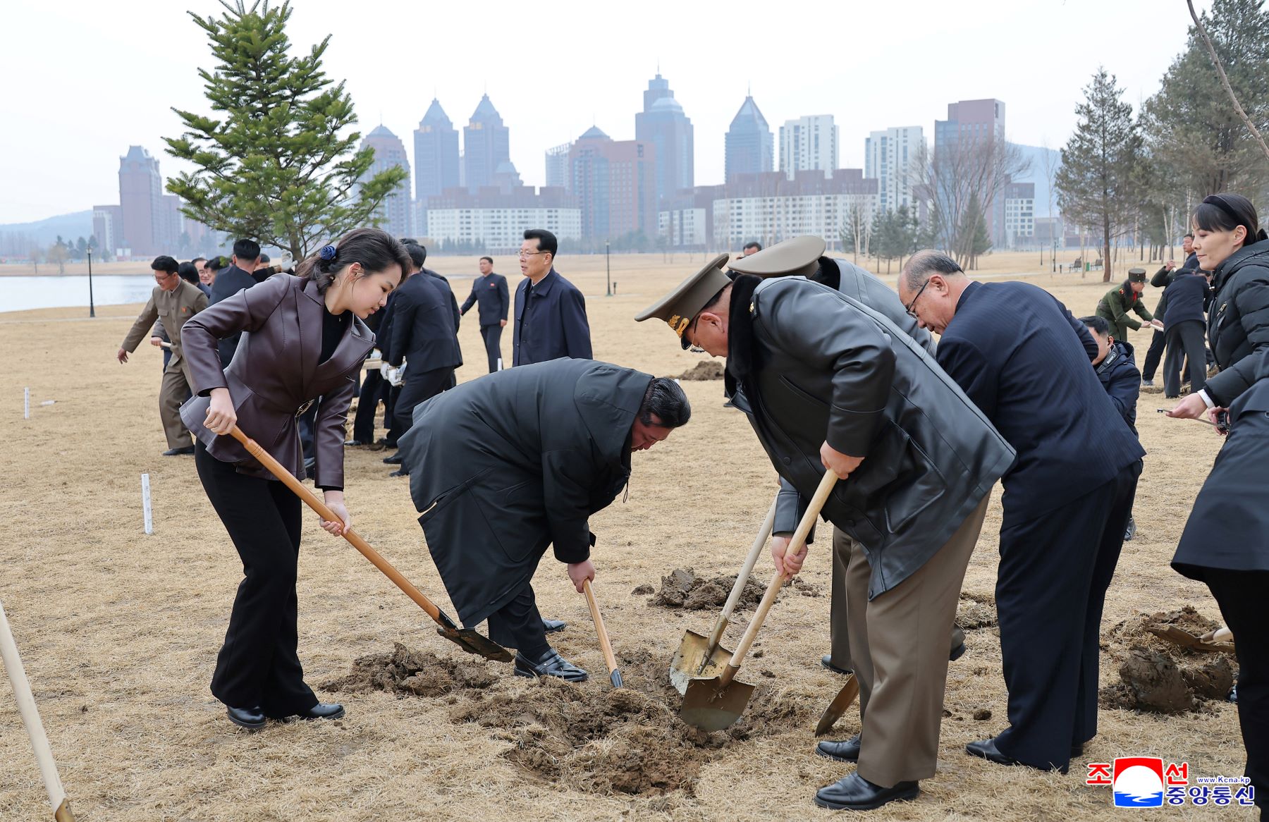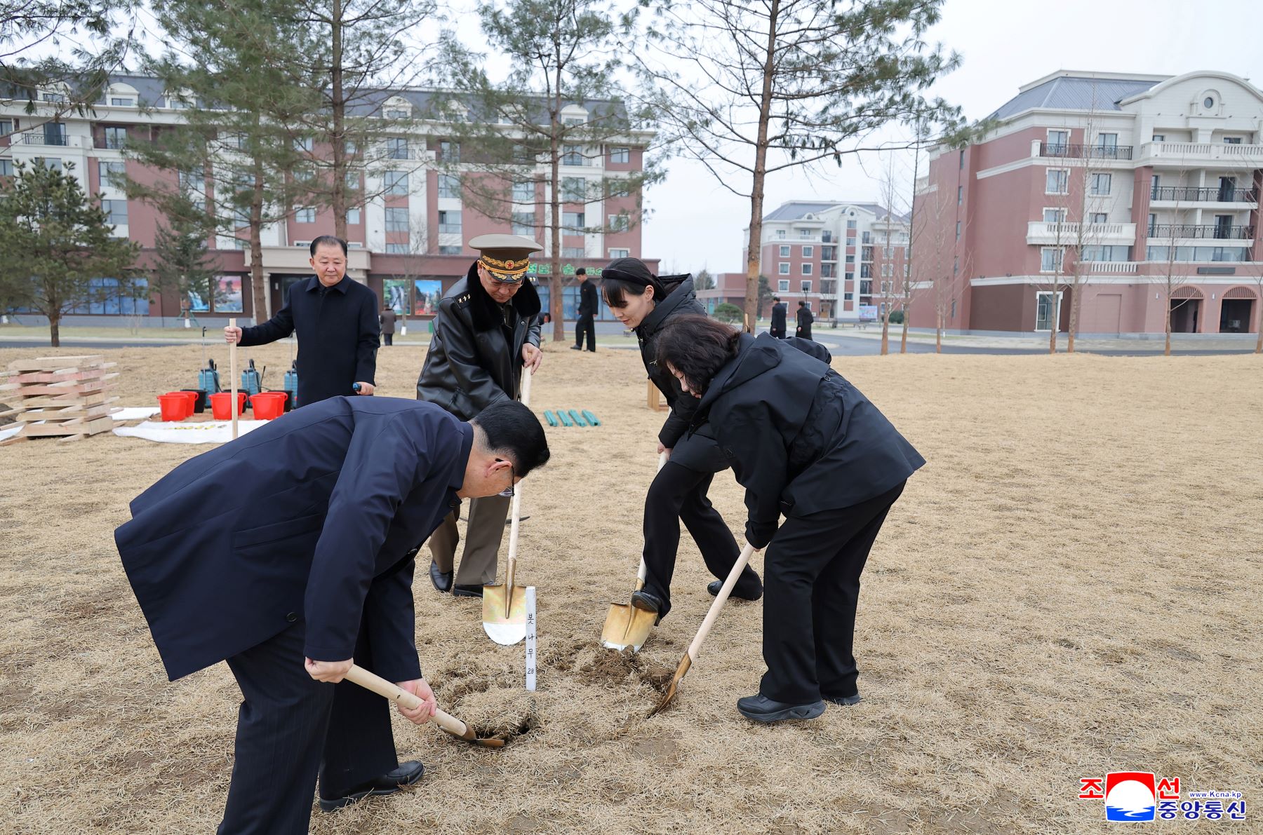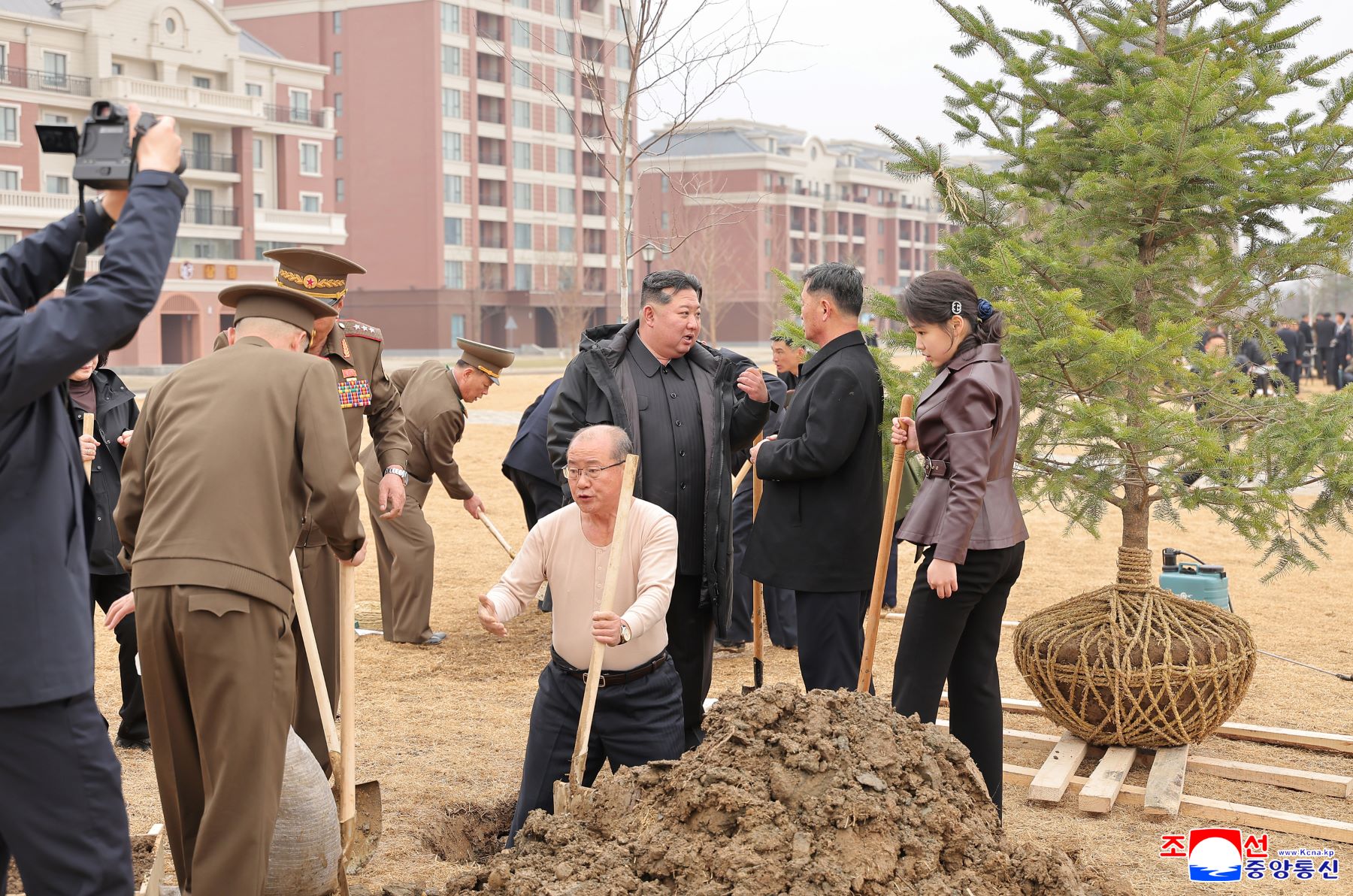 Durante unas horas el camarada Kim Jong Un plantó con todo cuidado junto con los