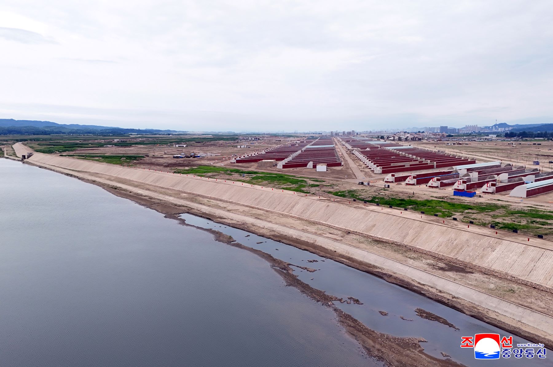 obra de reforzamiento de diques en las zonas insulares de la ciudad de Sinuiju y el