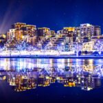 Es tan pintoresco el paisaje invernal de la zona residencial con terrazas a orillas del rio Pothong de la capital Pyongyang de la RPDC,...