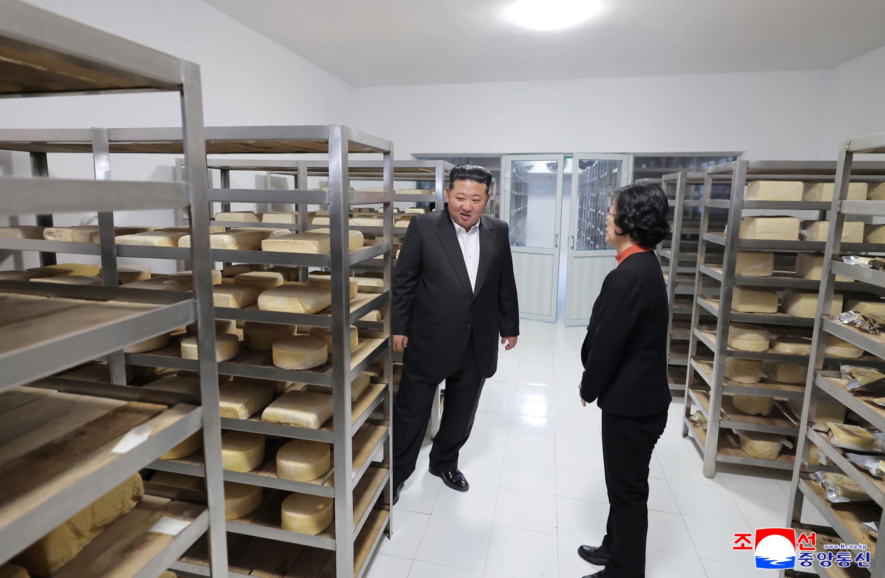 Probando los productos lácteos, el Secretario General evaluó su sabor diciendo que es