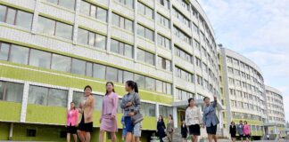 El centro acondicionado de forma peculiar en la zona de Hwasong, Pyongyang, capital de la RPD de Corea está lleno de visitantes diariamente.