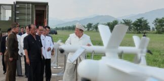 Kim Jong Un dirige sobre el terreno la prueba de drones...