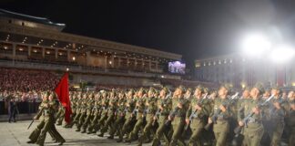 Kim Jong Un presencia función gimnástica por el 80 aniversario de la fundación del...