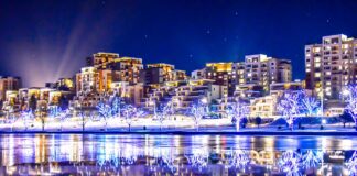 Es tan pintoresco el paisaje invernal de la zona residencial con terrazas a orillas del rio Pothong de la capital Pyongyang de la RPDC,...