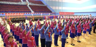 ¡Generales, oficiales, suboficiales y soldados del valiente Ejército Popular de Corea! ¡Oficiales y soldados de las unidades participantes en el desfile militar! ¡Innovadores laborales y ameritados...