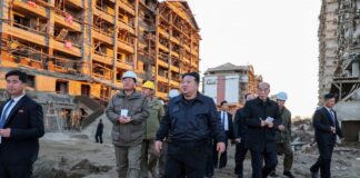 El camarada líder Kim Jong Un revisa zonas de reconstrucción en...