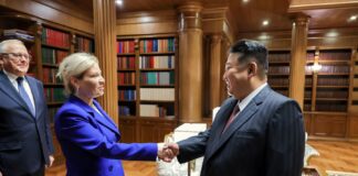El camarada líder Kim Jong Un recibe a Olga Lyubimova y...